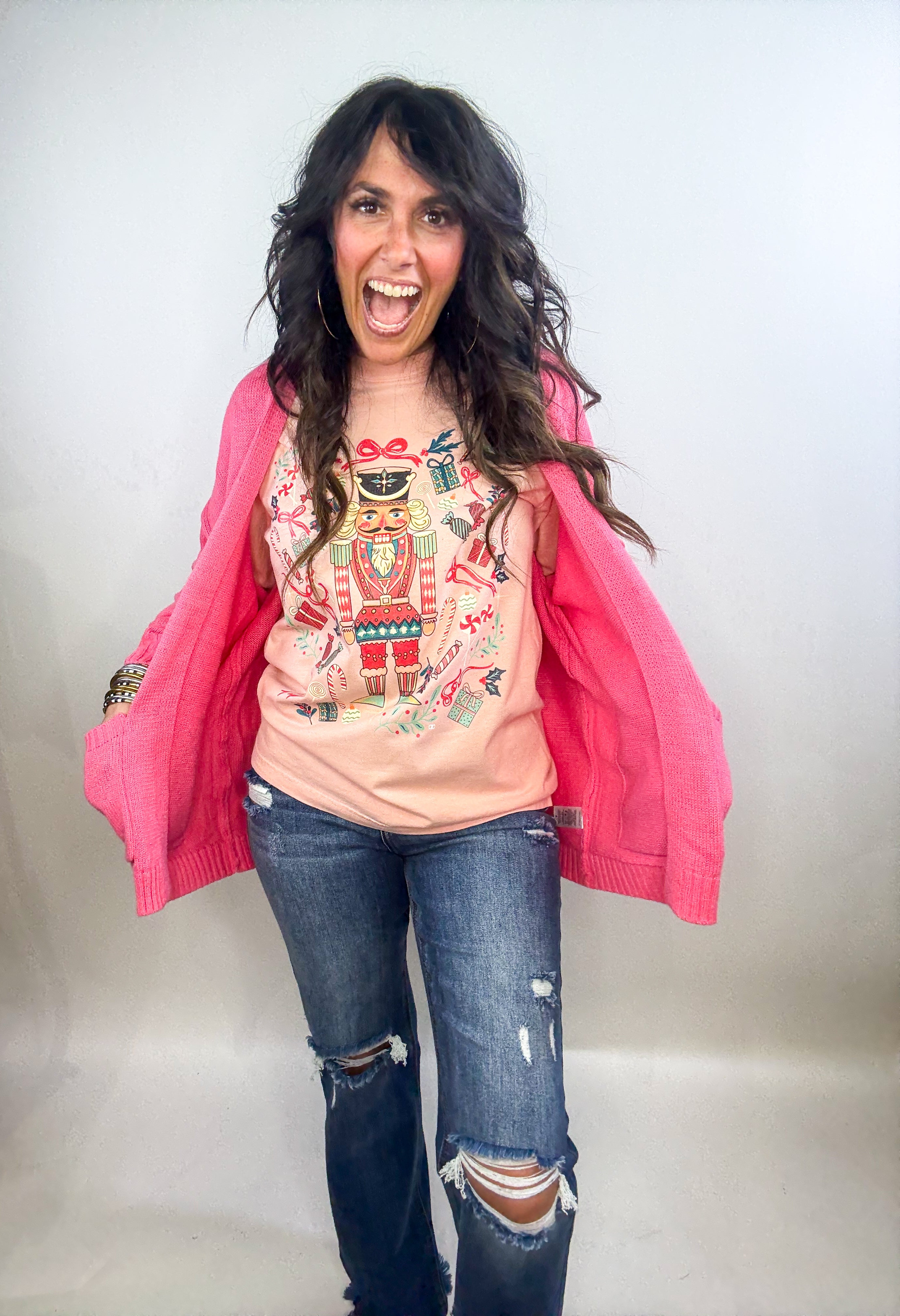 This long sleeve Christmas graphic is sweet, festive, and so easy to layer — perfect under cardigans, jackets, or worn on its own for all your merry moments. Cute for school days, shopping trips, or anything bright + joyful this season 🎁💖
